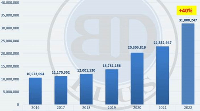 BD Plus is also a dynamically developing company in Georgia and the chart below demonstrates its annual growth from 2016 to 2022.